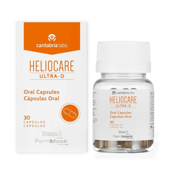 Heliocare Ultra D Oral Capsules contain Fernblock®, extract of Polypodium leucotomos, and other natural anti-oxidants such as Vitamins C and E which contribute to the protection of cells from oxidative stress. Vitamin D contributes to the absorption and normal utilisation of calcium and phosphorus, to the maintenance of bones and teeth in normal conditions and the normal functioning of the immune system.